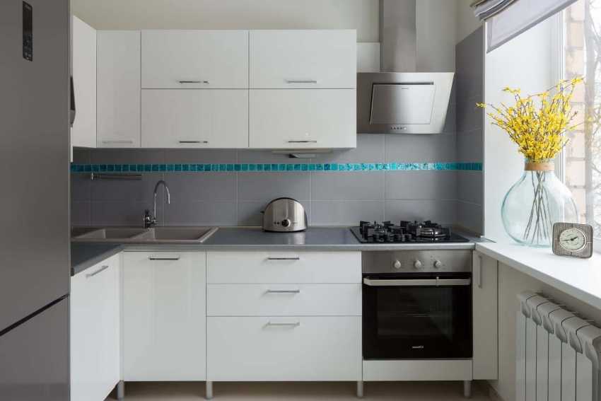 10. При установке плитки в углах кухни, если необходимо ее обрезать, то используют плиткорез или болгарку с алмазным диском.