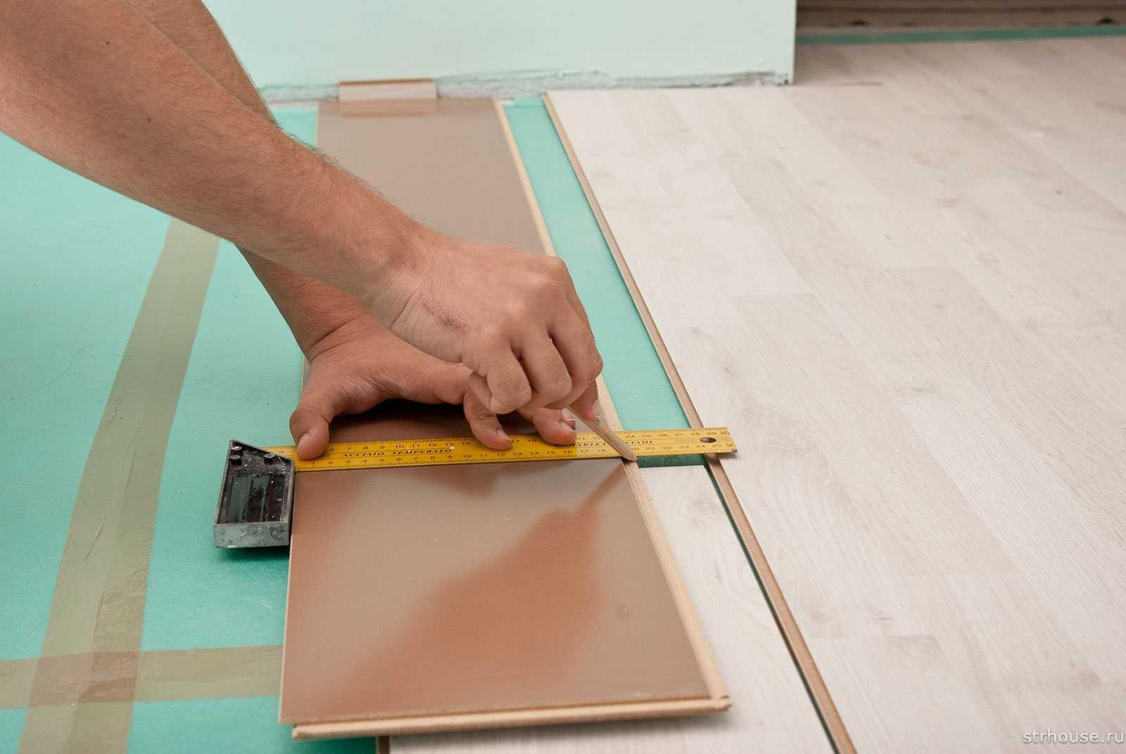 - выполните замеры, рассчитайте нужное количество ламината, молдингов, порожков, деталей обрешетки;