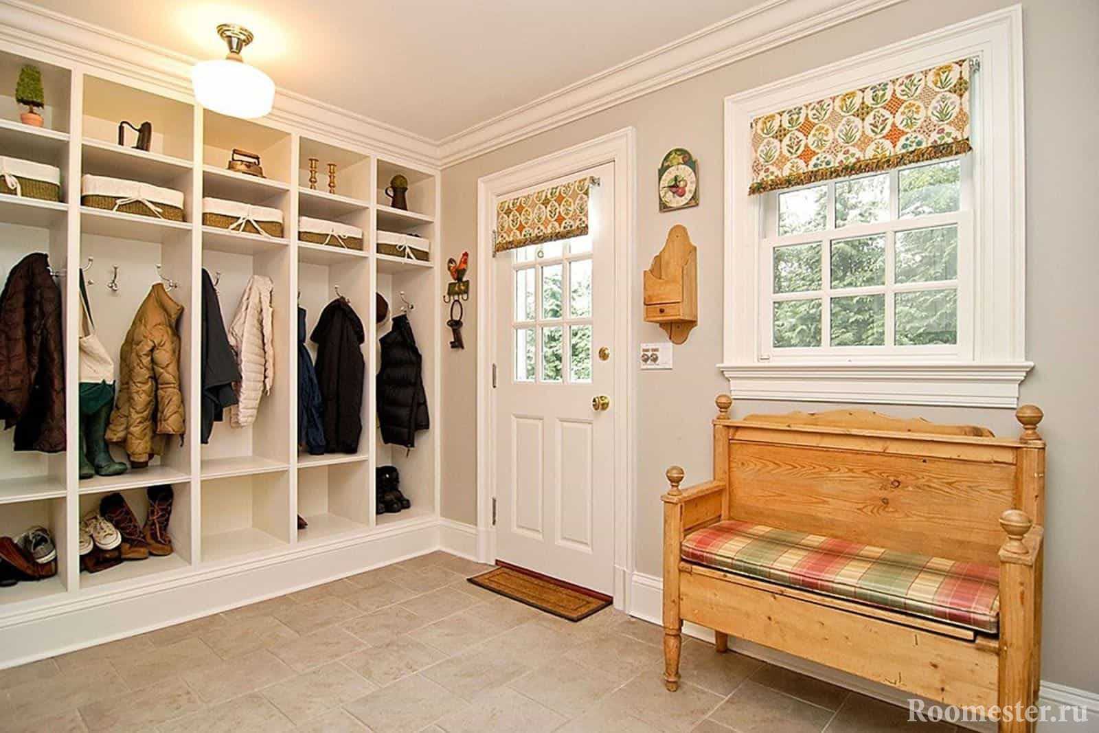 Гардеробный шкаф с встроенной системой вешалок и полочек станет находкой для , поскольку уличную одежду и обувь оставляют внутри. Внешние дверцы такого шкафа выполняют на заказ в тон к стенам или дверным полотнам.
