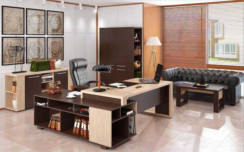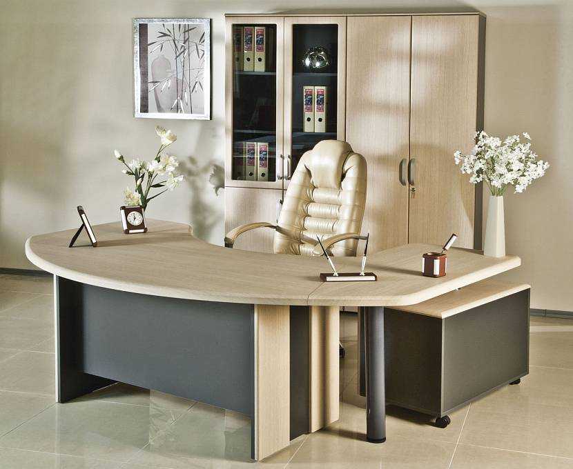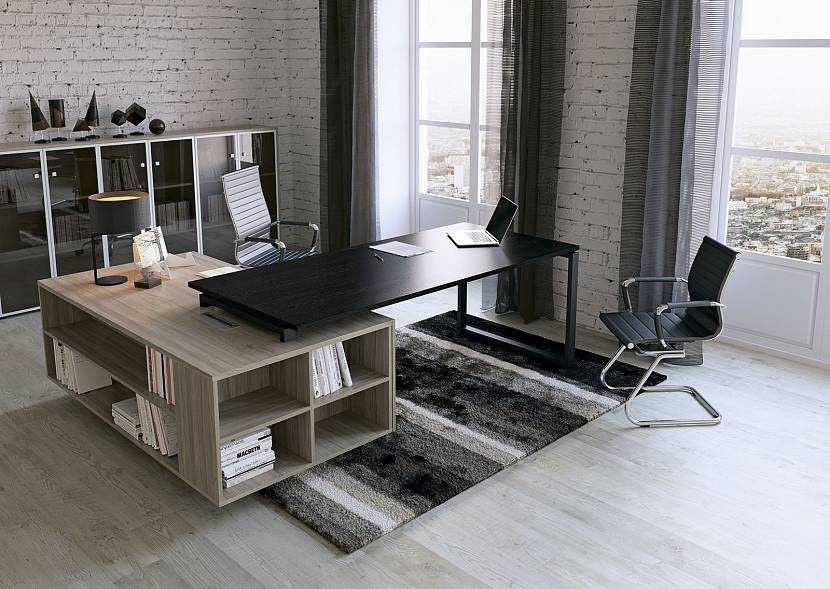 Главный посыл: строгость, стабильность и респектабельность. Впечатление достигается благодаря использованию мебели из высококачественных материалов, без закругленных углов, и креслу из натуральной или эко-кожи.