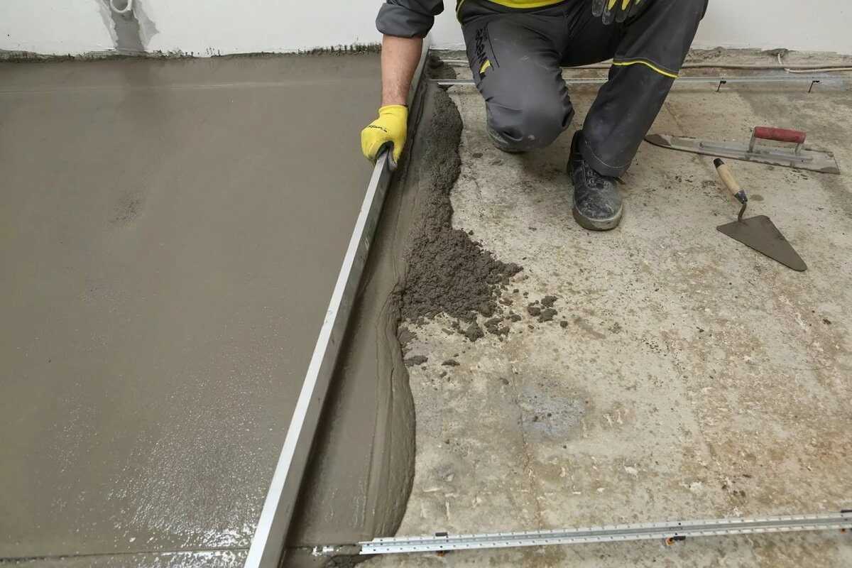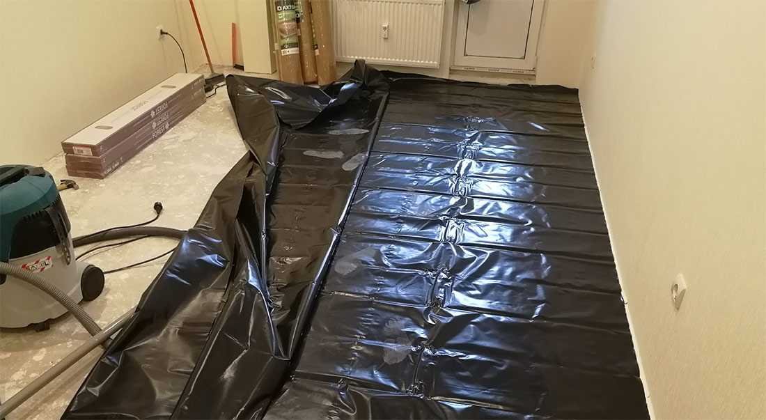 Первым делом следует проверить основание: бетонный пол от застройщика часто залит не по уровню, имеет перепады, различные неровности. Если бетонная стяжка ровная, но старая — обследуйте ее на предмет трещин и пустот.