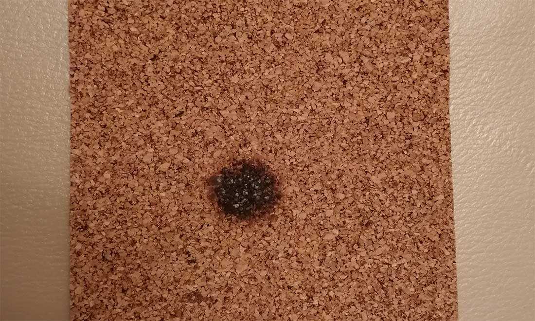 Чернеть от огня зажигалки образец начал через 2-3 секунды. На пятой образовалось довольно крупное пятно. Запах при горении остался неприятный.