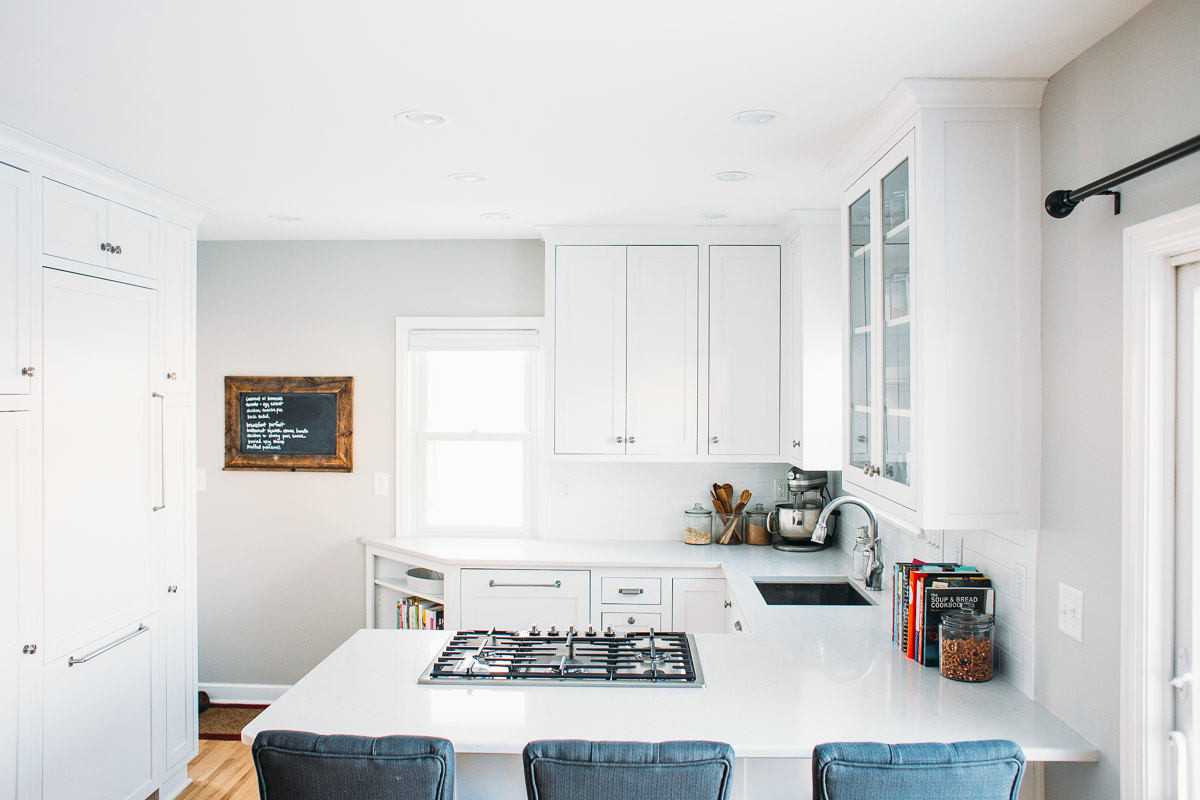 На фото грамотное расположение зон: раковина и плита вместе
