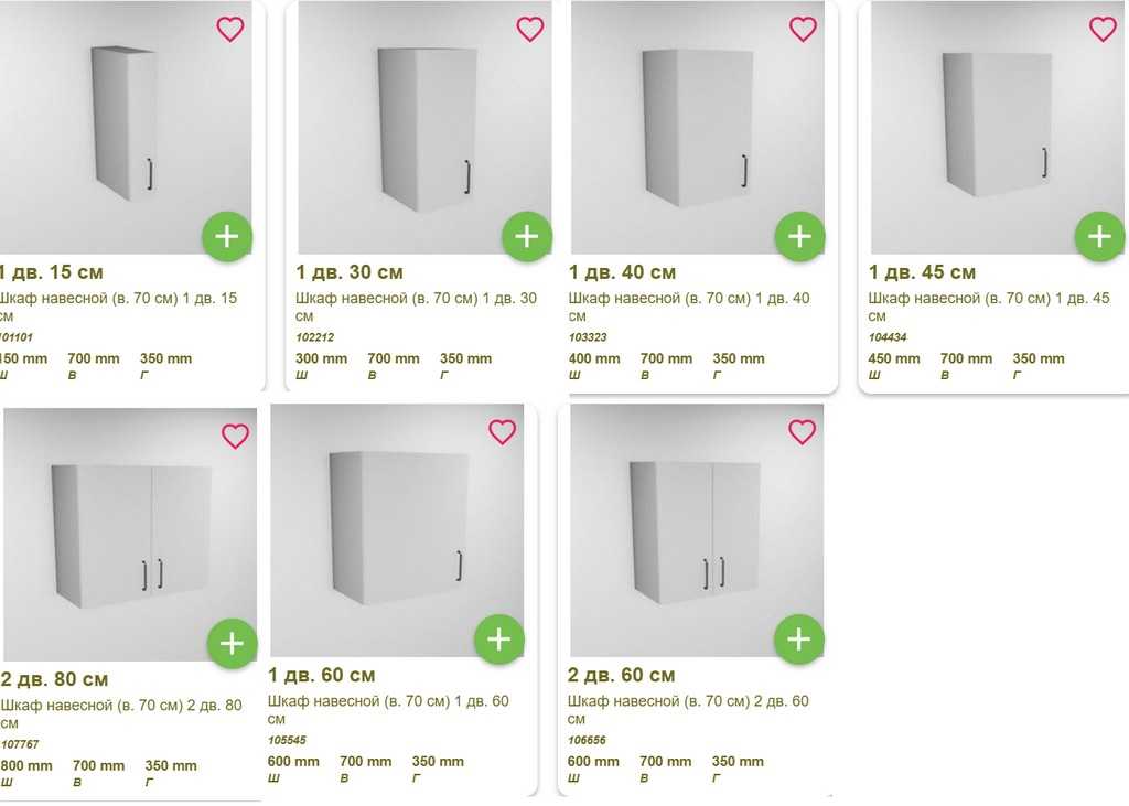 Варианты стандартных навесных шкафов в Леруа Мерлен