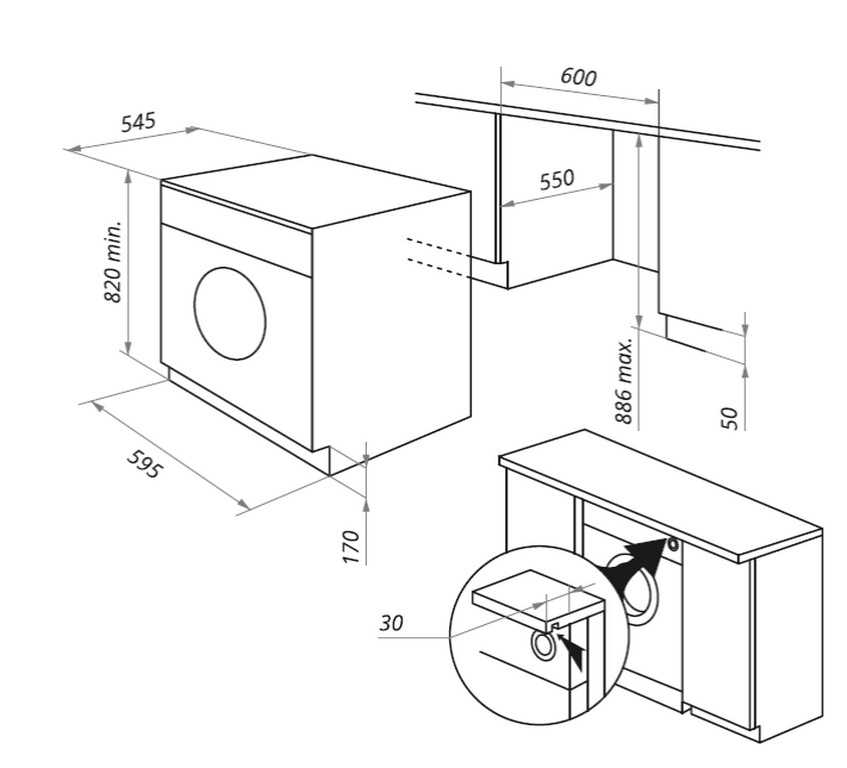 На фото ниже приведены схемы встраивания техники, ее размеры и габариты ниши.