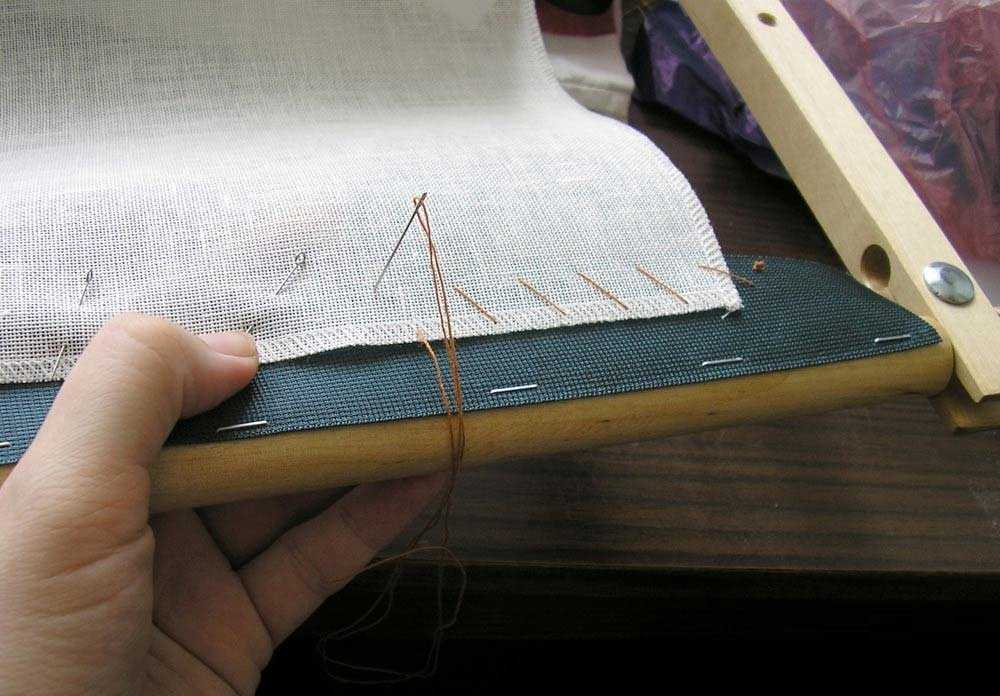 Вместо степлера для крепления полотна к перегородке используют клей на каучуковой основе или декоративные петли.