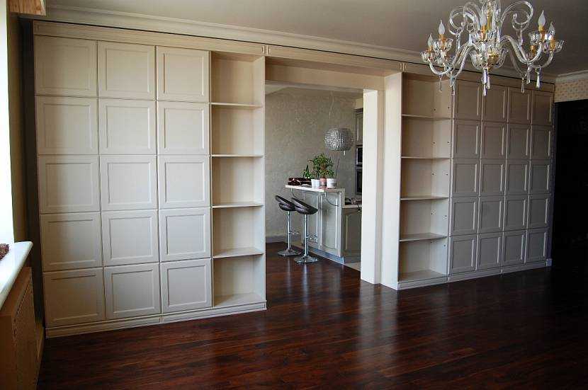 Шкаф на всю стену позволяет создать удобное и функциональное место для хранения, а также разделить пространство на необходимые зоны, полностью обособленные друг от друга.