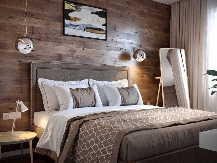 Первое достигается за счет открытых окон и искусственной подсветки, второе — за счет большой удобной кровати, подушек и одеял, в основе третьего — льняное или хлопковое постельное белье, тумбы из натурального дерева или столики из слэба.