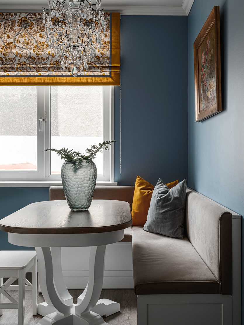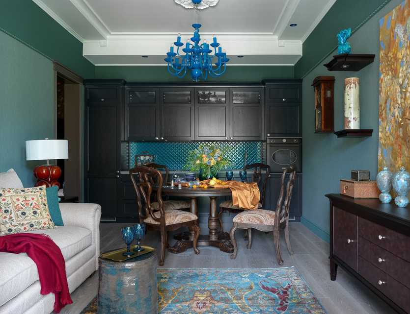 Красный с небольшим количеством золота добавит ощущения торжества и праздника. Оливковый тяготеет к интеллектуальным играм и чтению, интересным разговорам и глубоким высказываниям. Сочетание фиолетового и серого оживит любую дружескую беседу и настроит всех для приятного времяпрепровождения. Синий – олицетворение спокойствия и умиротворения. Но используется аккуратно, чтобы не сделать интерьер мрачным и темным.