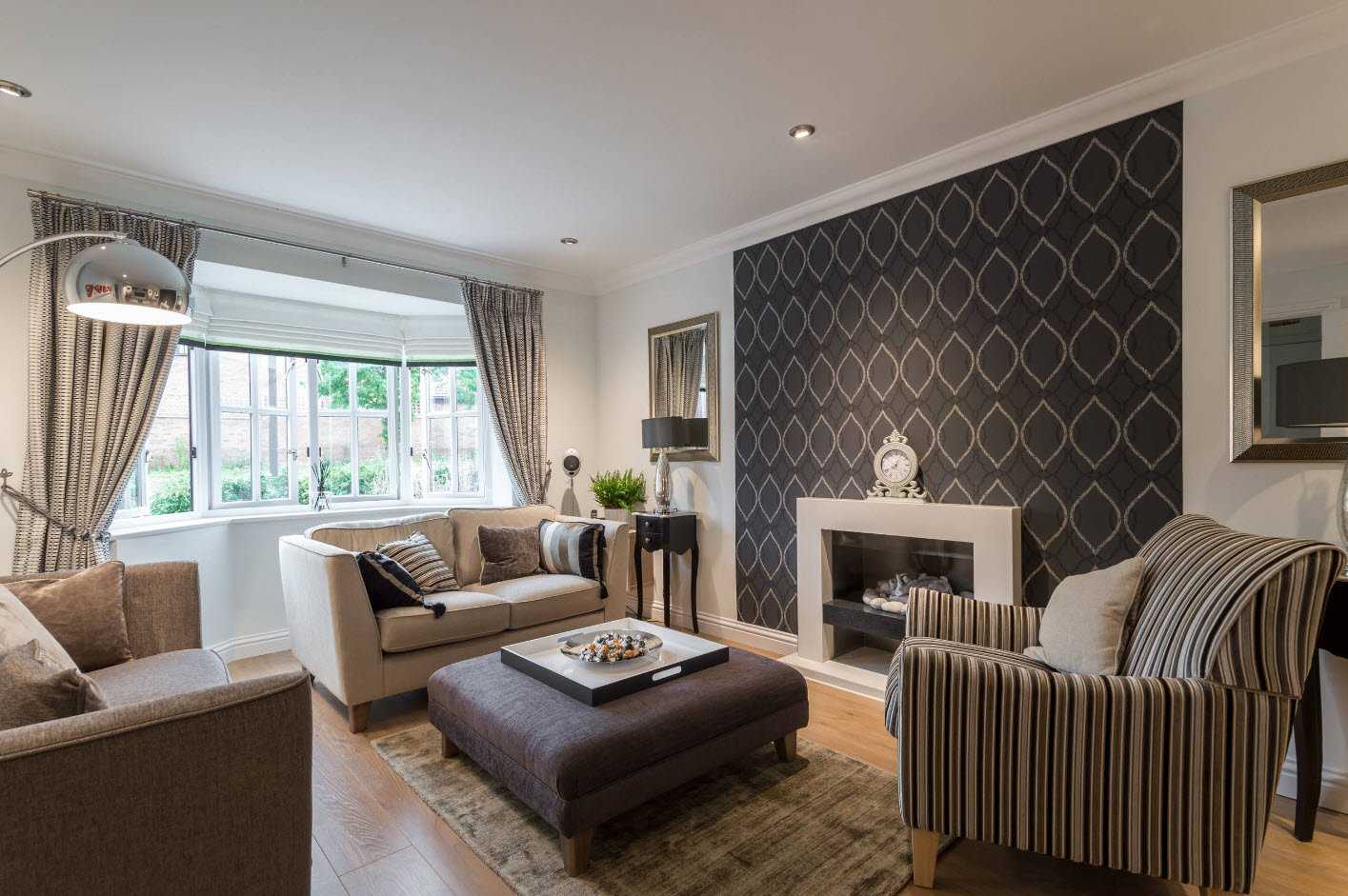 Вставка фактурных обоев для придания гостиной уникальности