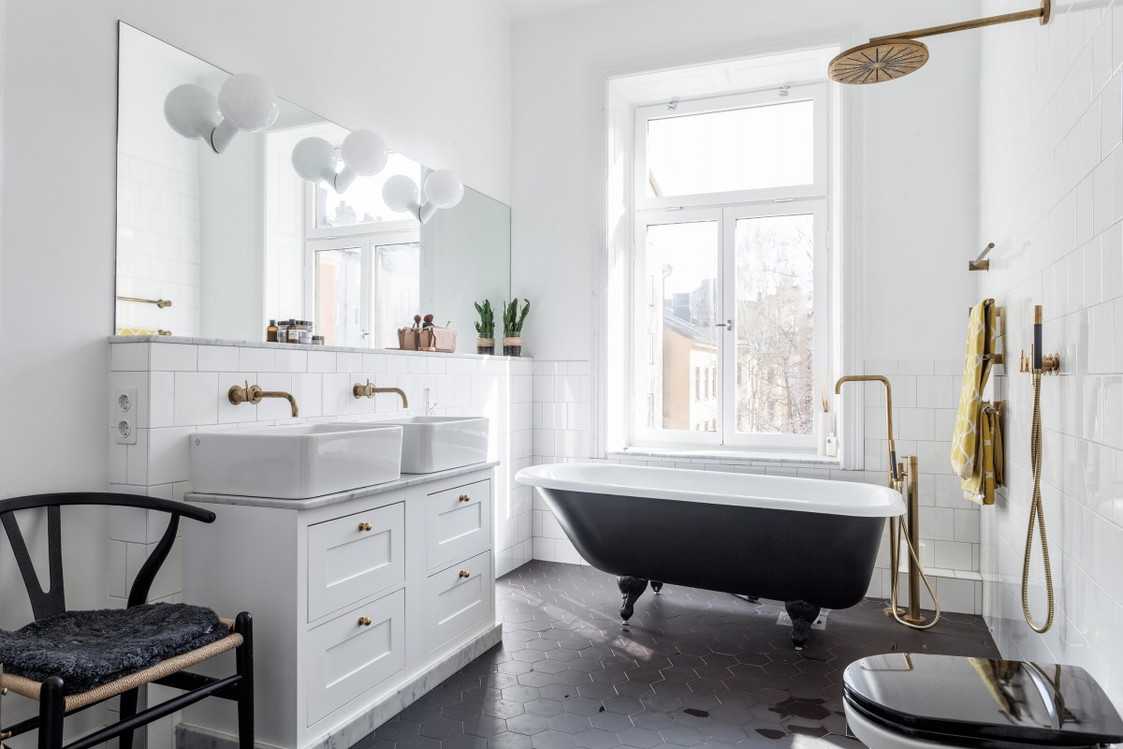 В стиле ретро особенно оригинально смотрятся санузлы с округлыми ваннами на ножках в белом цвете. Причем в просторных комнатах ее лучше всего ставить по центру. Отличным дополнением к этому станут бронзовые или латунные краны и смесители.