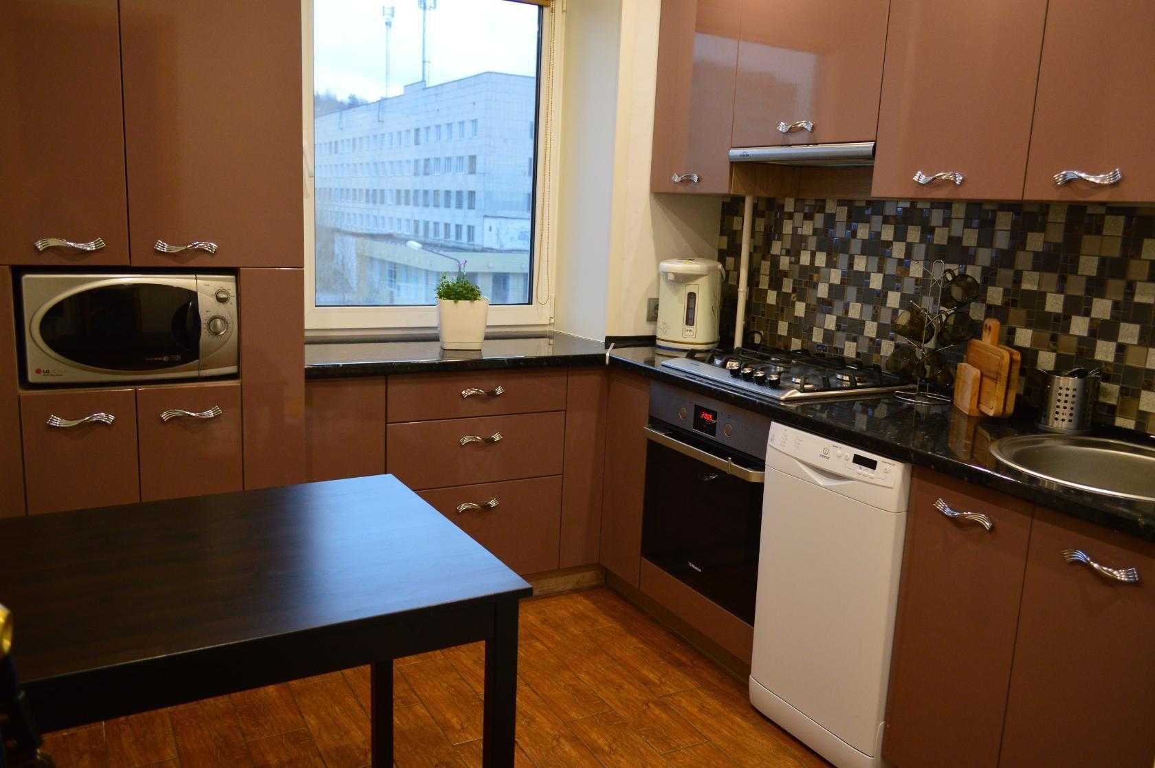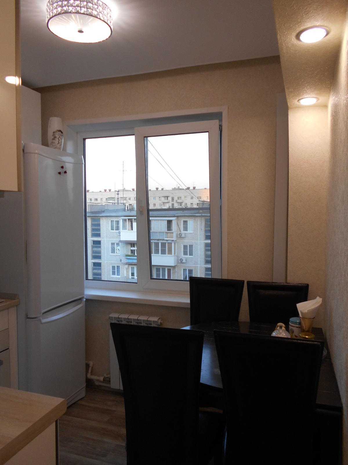 Один из вариантов планировки — перенос мойки под окно. Тогда для холодильника освобождается угол у входа. Но перенос мокрой зоны по закону также требует согласования. Такое решение потребует дополнительных хлопот с удлинением коммуникаций.