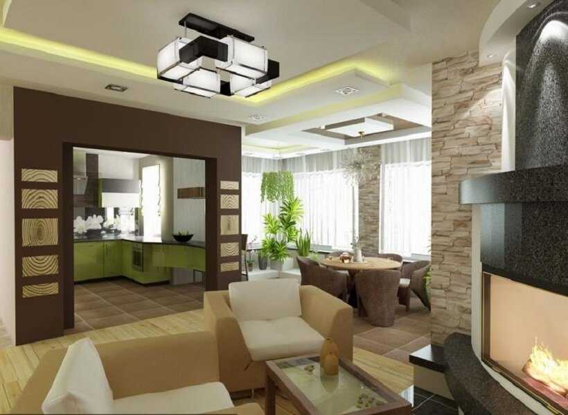 Камин – отличный элемент интерьера. При грамотном использовании камин отлично подойдет для . Причем будет общим элементом для нескольких зон.