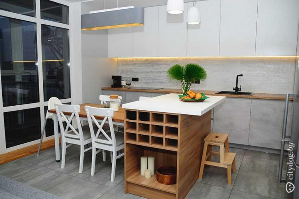 Если есть возможность согласовать перепланировку по присоединению лоджии к площади маленькой кухни, то стоит ей воспользоваться. Так удастся выделить место для обеденной зоны, барной стойки или небольшой зоны отдыха.