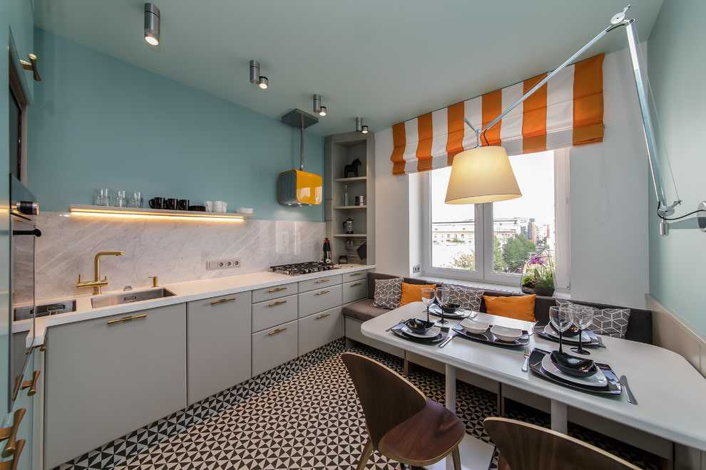 Яркие цвета в интерьере маленькой кухни-гостиной