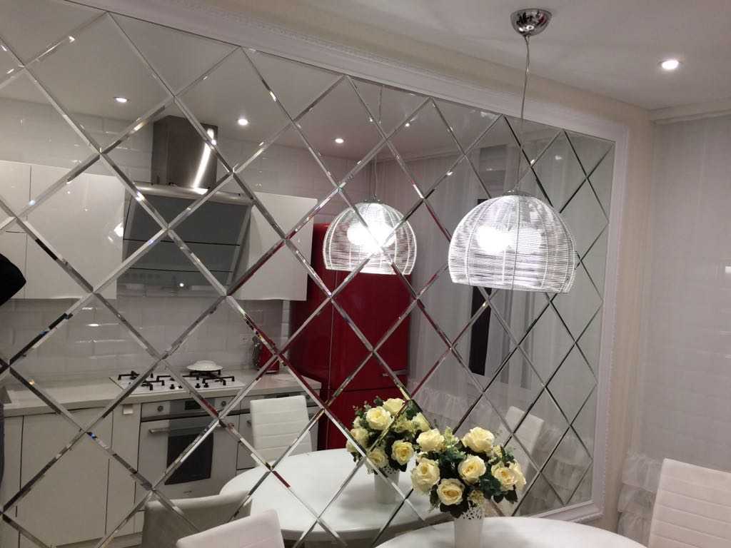 Не бойтесь использовать в декоре зеркала – например, в оформлении фартука, фацетного панно или даже в дизайне целой стены. Зеркальные поверхности позволят обмануть восприятие размеров маленькой кухни и сделать ее визуально больше.