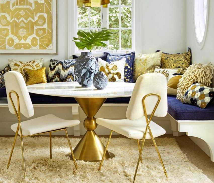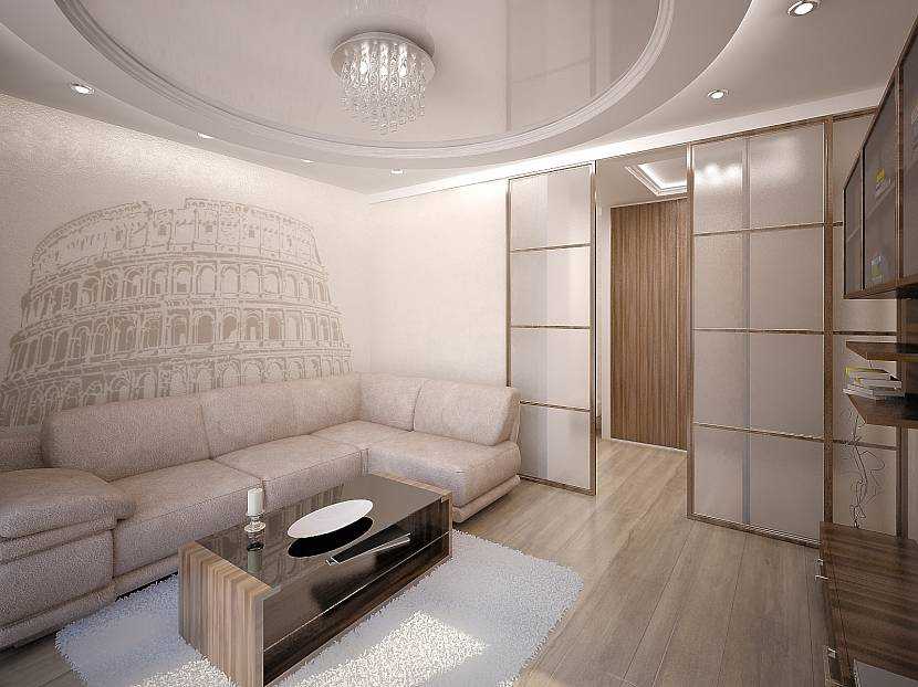 Количество мебели должно быть минимальным — ни одного ненужного предмета. Упор делается на простую форму с четкими линиями. Перегородки используют для разграничения пространства. Они могут быть сделаны из дерева, металла, стекла и даже бусин. В больших квартирах для зонирования можно устанавливать лаконичные полукруглые или прямоугольные арки из гипсокартона. В особенности этот вариант подойдет тем, кто совмещает основной дизайн с ар-деко или нео-классикой. Барная стойка, отделяющая кухню от гостиной — еще один современный элемент.