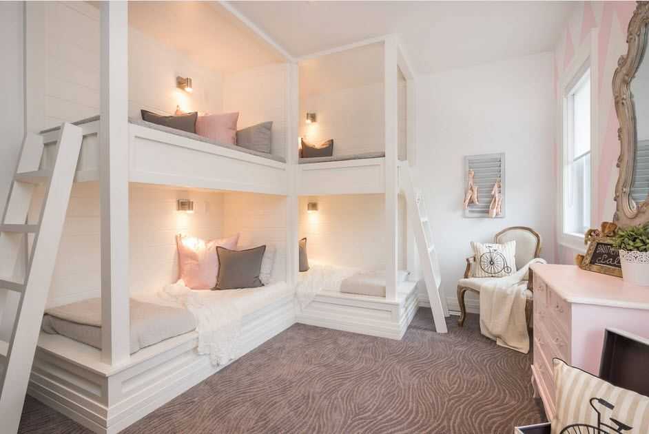 Совет! Если вы не уверены в цвете, вы можете выбрать «мечтательные» белые детские комнаты, как для декора комнаты девочек, так и для мальчиков. Тем самым, вы создадите мирную и безмятежную атмосферу, в которой ваш малыш будет чувствовать себя спокойно. Что касается ярких оттенков, то вы можете добавить их любым другим способом.