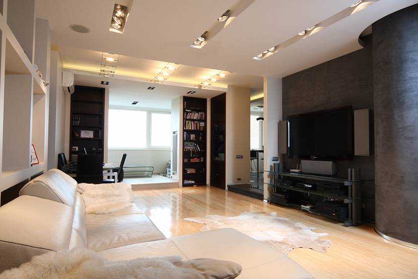 Зал, объединенный с лоджиейИсточник remont-samomy.ru