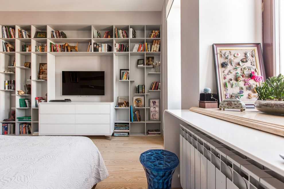 - спальня идеально миксуется с библиотекой или рабочей зоной, что особенно актуально для крошечных малогабаритных квартир;