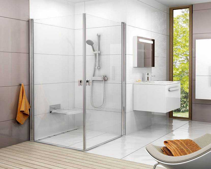 Современная распашная конструкция отлично подходит для душа, размещенного в нише. Она устанавливается в специальной коробке и надежно держится на петлях. При создании изделия используется только качественная и проверенная фурнитура. Данный тип занимает достаточно много места, но при этом стоит недорого, поэтому считается отличным бюджетным решением для ванной комнаты.