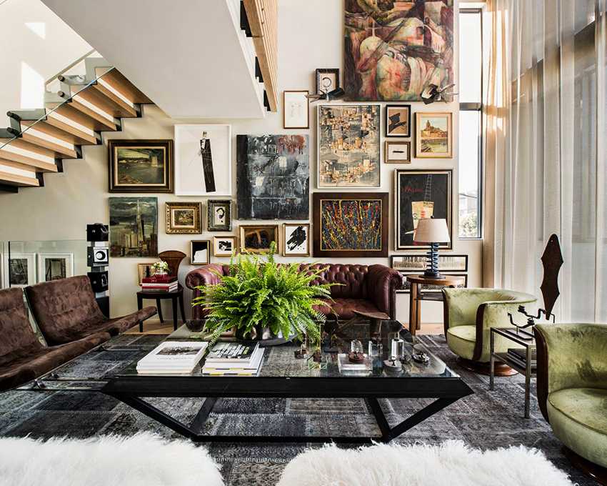 В интерьере бохо классика гармонично сочетаются простые и необычные предметы