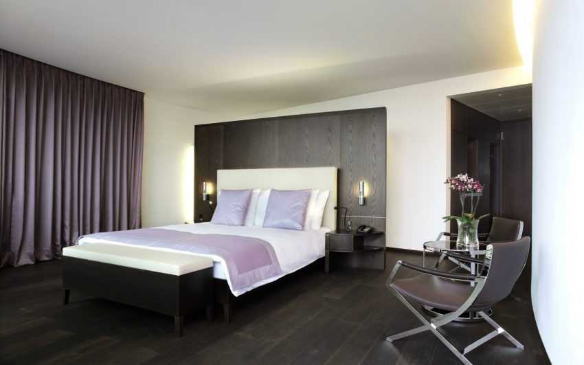 Основная задача стиля хай-тек в спальной заключается в создании максимального комфорта. Идеальным вариантом будет не насыщенность, а мягко-яркий тон серых и черных цветов. Для спокойствия добавляются бежевые, розовые или синие оттенки.