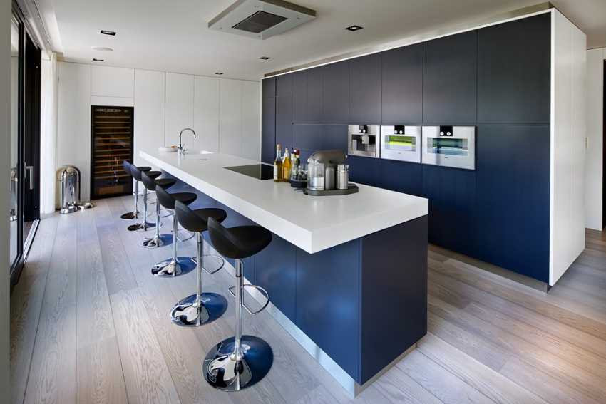 «Основная черта в хай-теке — использование инженерно-технических приемов. Хай-тек — это «умный дом», например, высокотехнологичная кухня», — подчеркивает главную особенность стиля, дизайнер Вадим Соломон, TODA Group Design. Хай-тек демонстрирует технические новинки, начиная от бытовых приборов и заканчивая сенсорными панелями, «теплыми» полами и стенами, системами управления голосом, климат-контроля и ароматизации, управления освещением, безопасностью и т.п. Провода и шнуры прячут за фальш-панелями или в специальных коробах