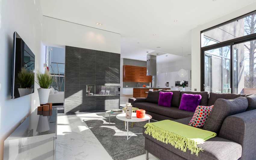 Окна с панорамным остеклением характерны для хай-текБольшие окна – много светаОгромные окна в современной гостиной