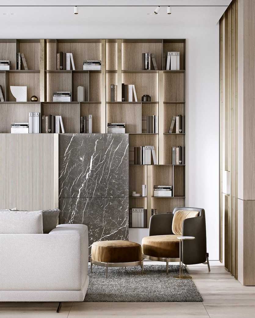 Ткани со сложными дизайнерскими рисунками, обои с сюжетными принтами не подойдут: минимализм это про красоту природных материалов. Мрамор, оникс, песчаник, травертин, дерево подбираем с максимально выразительными срезами.