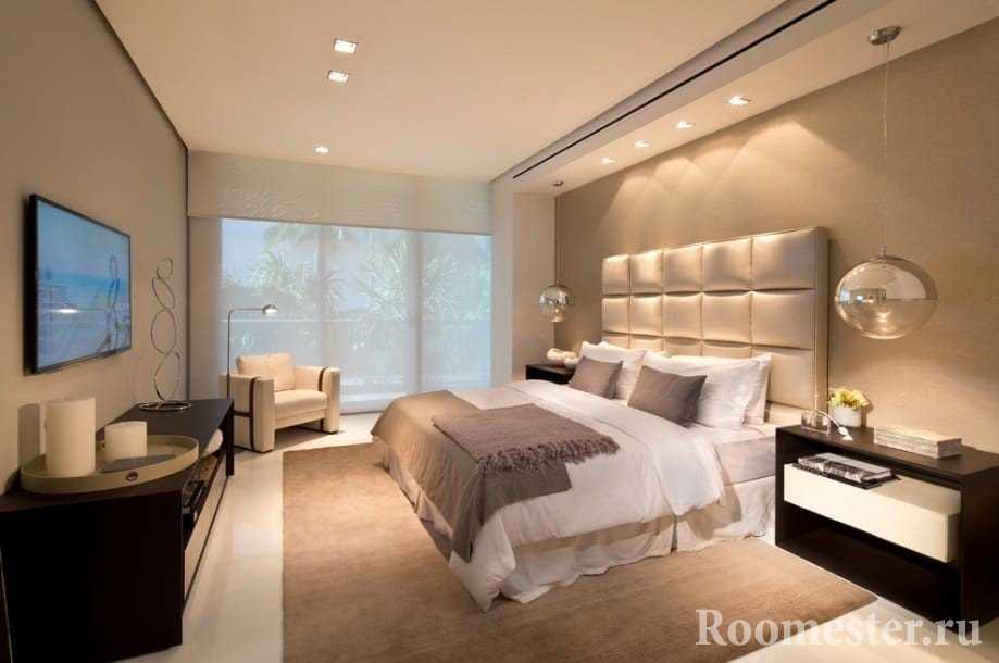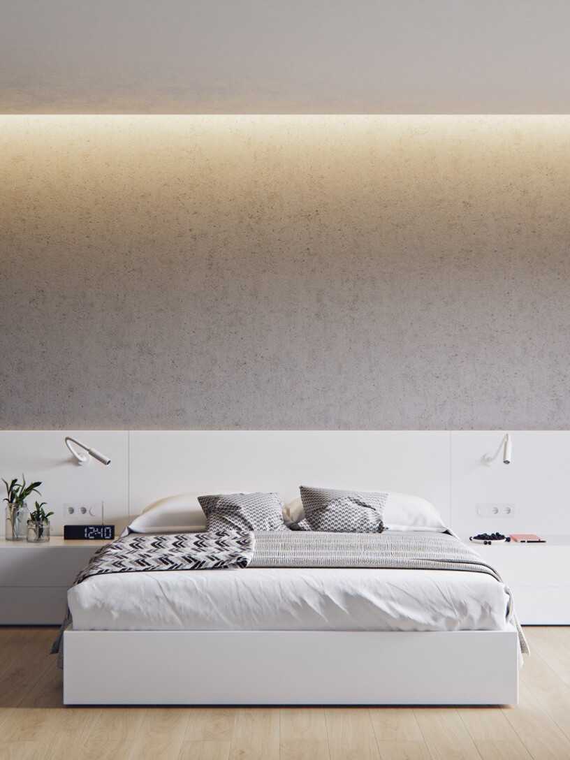 «Минимализм в интерьере спальни категорически не приемлет никакой навесной мебели: всевозможные полочки и стеллажи необходимо полностью исключить»