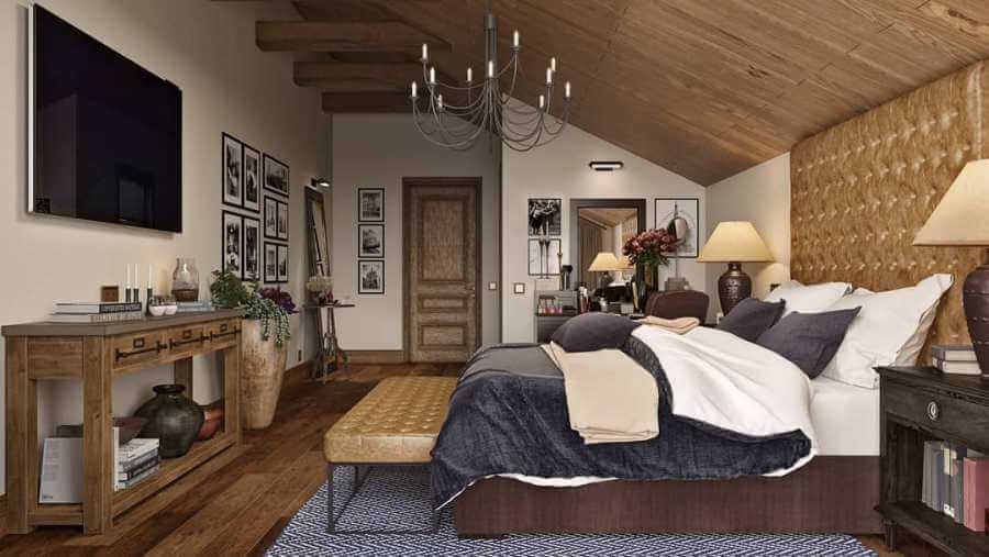 Подборка фото интерьеров-шале спален наглядно проиллюстрирует выше всё перечисленное.