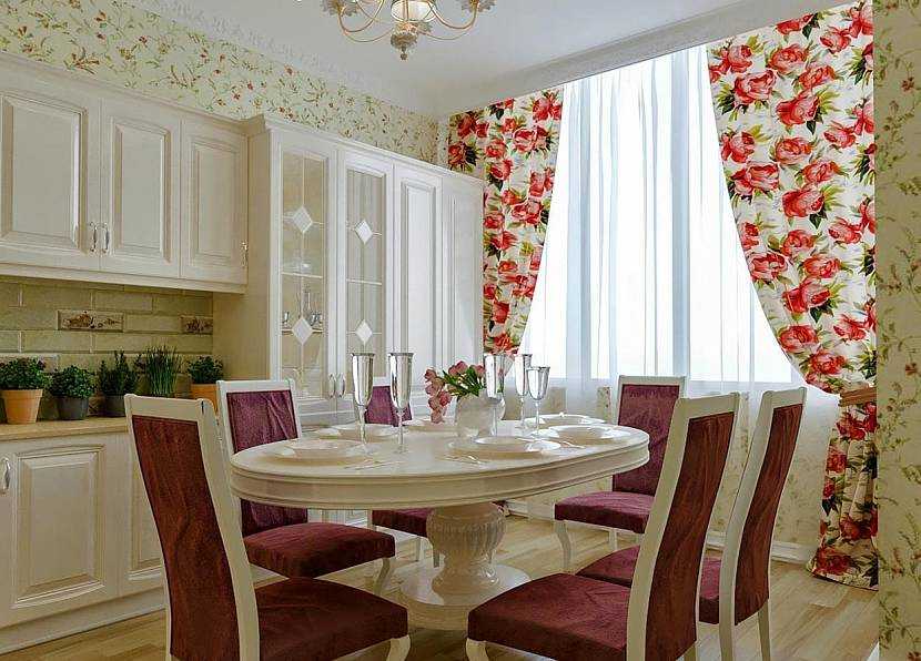 Цветочные принты легких занавесок придают очарования кухне в стиле провансИсточник kuhnitut.ru