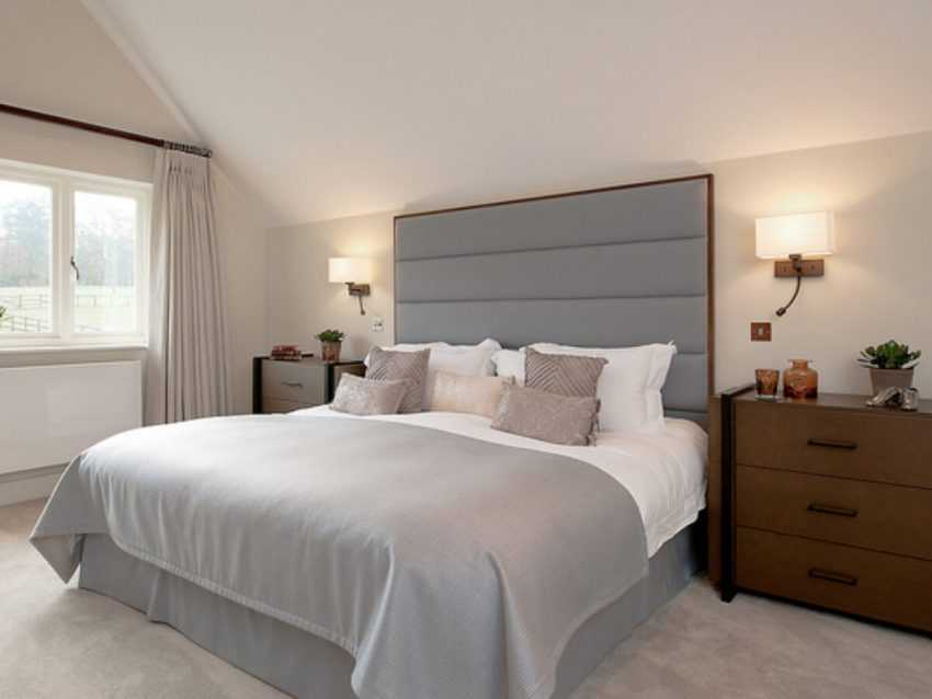 У изголовья лучше всего поставить бра с возможностью регулировки направления и яркости потока света. При этом выключатель должен располагаться на расстоянии вытянутой руки (если у вас оборудование с пультом, то все еще проще).