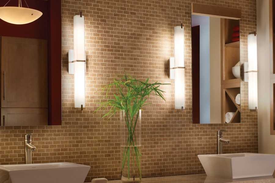 Около зеркала целесообразно расположить неброские светильники с равномерным светом
