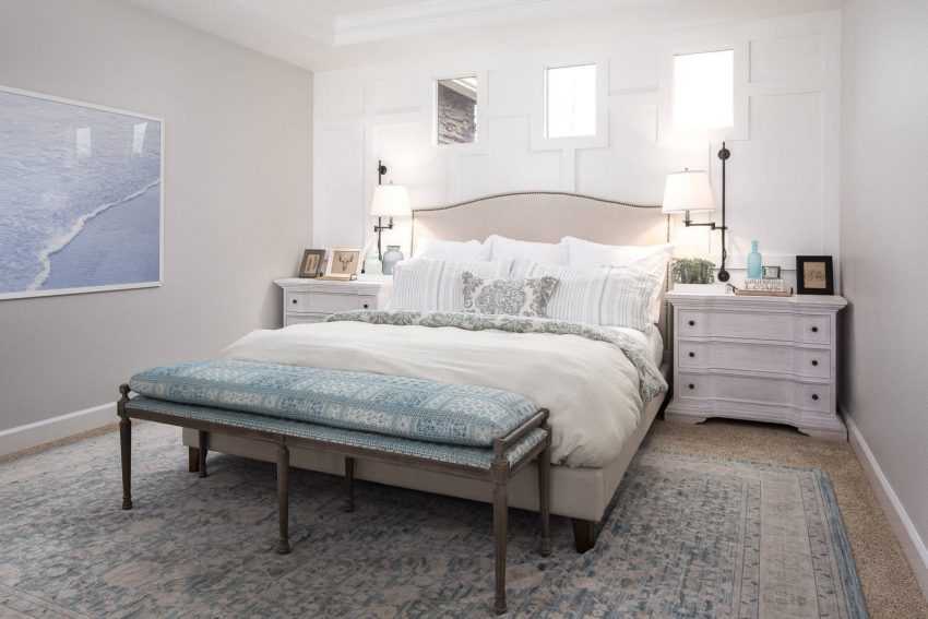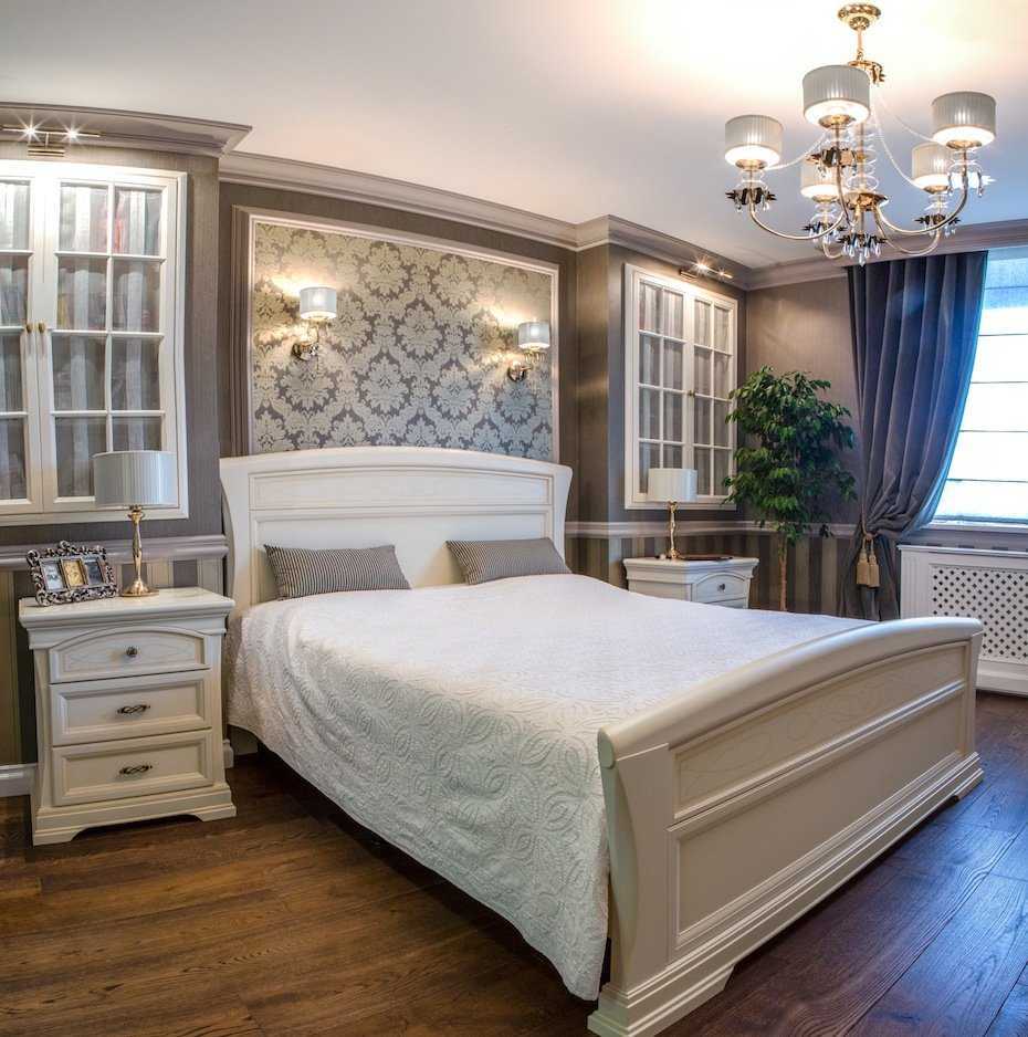 С помощью настенных светильников можно подсвечивать не только прикроватное пространство, но и выделять определенные части интерьера: зеркало, полки с различными декоративными элементами, картины или фото и многое другое. Для наиболее качественного освещения спальной комнаты лучше выбрать светильники с возможностью регулировки направления потока света.