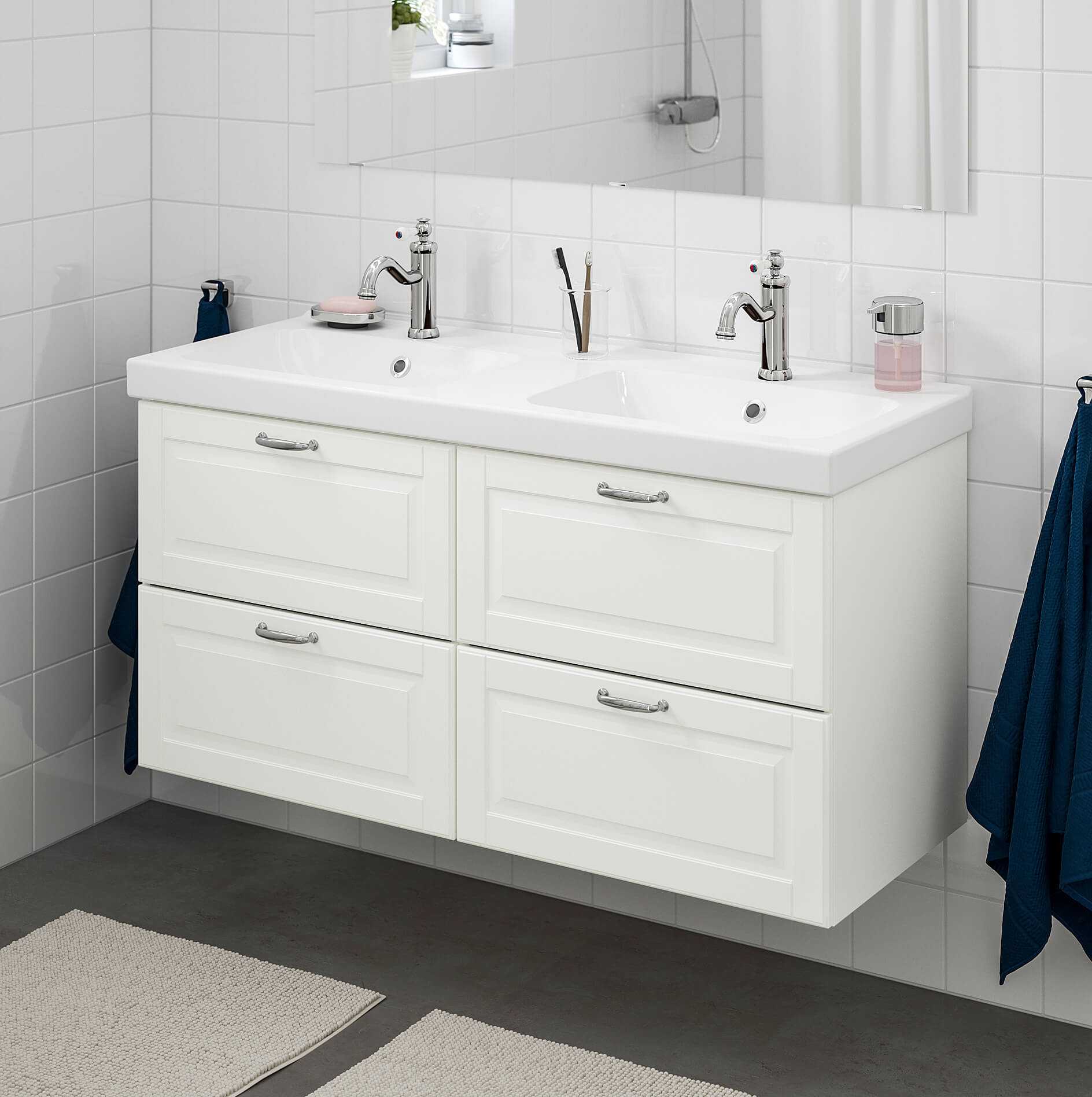 Дизайнеры советуют выбирать для санузлов мебель светлых оттенков. Она намного проще в уходе, чем темная, поскольку потеки от мыльной воды на ней заметны меньше. Относительно качества исполнения стоит рассмотреть не только столешницу, раковину и тумбу, но и фурнитуру.