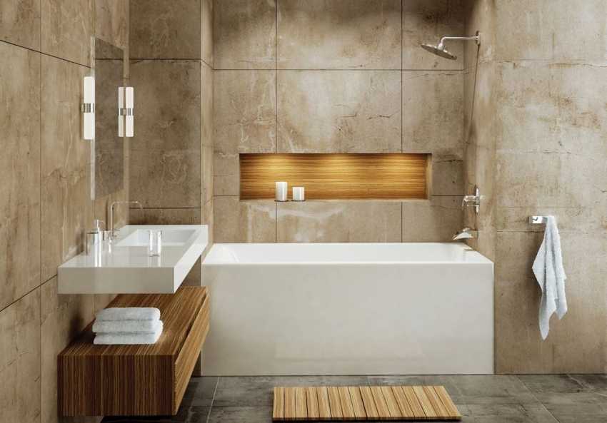Если в ванной комнате присутствует ниша, ее можно использовать для установки прямоугольной ванны стандартного размера