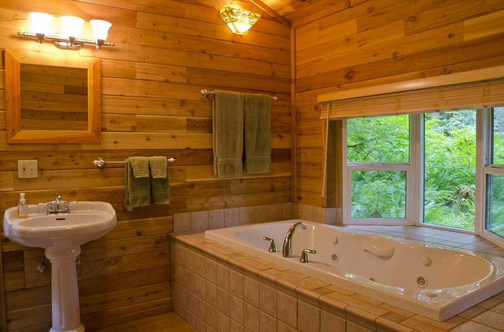 В первом случае панелями обшивается вся площадь потолка и стен с соблюдением всех технологий. Во втором варианте осуществляется частичная обработка древесиной, сочетание имитации бруса с текстилем, обоями, стеклом.