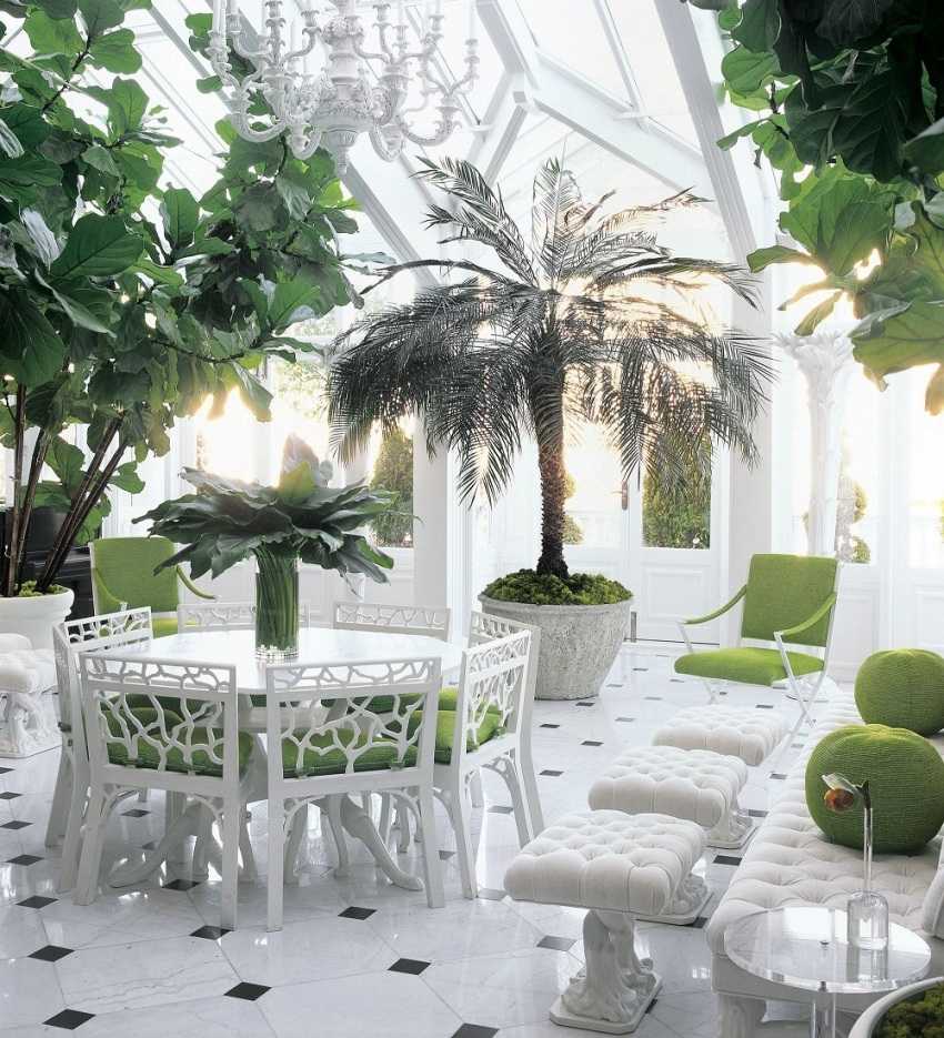 Жилой сад. Отличный вариант для любителей зелени. Это полноценное жилое помещение, в котором можно расположить столовую, гостиную, зону отдыха. В таком саду комфортно и растениям, и людям. Создать жилой сад можно запланировав его заранее (если дом строится), либо разместив его в выбранном помещении. Основное требование – наличие больших оконных проёмов для достаточного дневного освещения.
