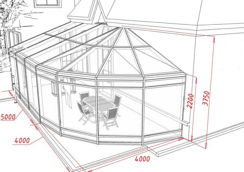 - Высота от пола до потолка. Смысл в естественной вентиляции зимнего сада полностью отпадает, если высота меньше 2500 мм.