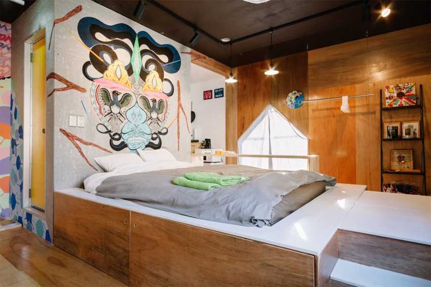 9. Полы, подиумы, колонны, пилястры и другие архитектурные конструкции тоже популярны, но их должны монтировать мастера. Подиум с высоким матрасом способен заменить кровать, как практикуют в японском минимализме. Под ним оборудуют выдвижные ящики для одежды или еще 1 кровать. Сверху удобно оформить рабочее место.