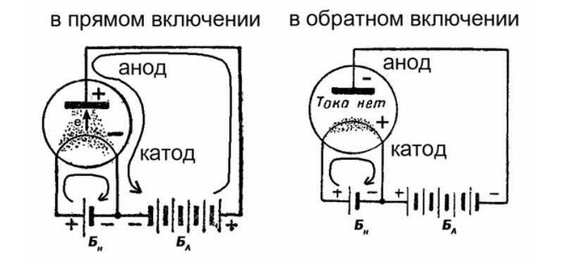 Эта схема демонстрирует прямую зависимость применяемых терминов от движения электронов. В некоторых вакуумных приборах между анодом и катодом устанавливают сетчатую перегородку, которой регулируют силу тока и соответствующий коэффициент усиления.