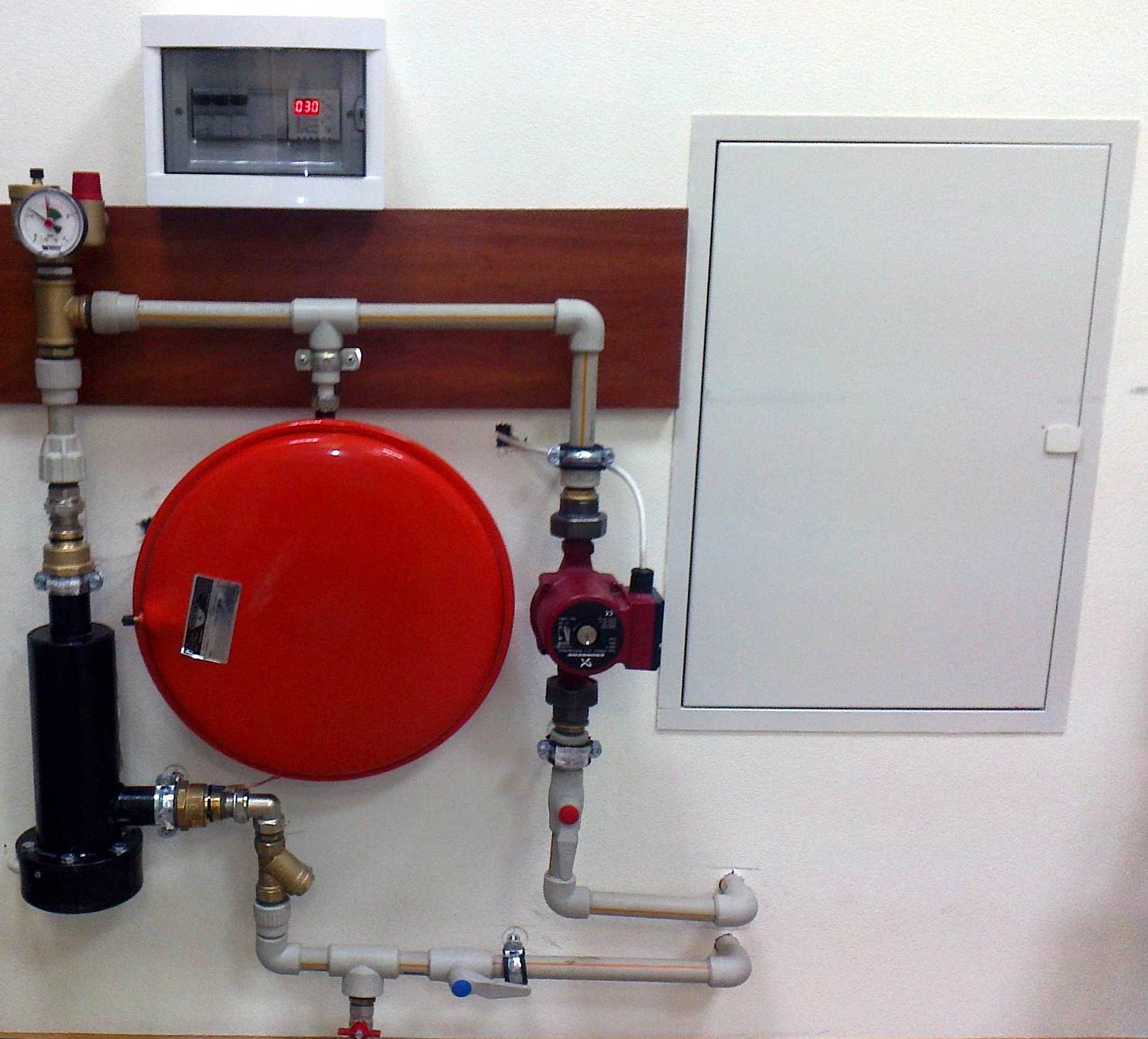 На прямом участке подающего трубопровода устанавливается группа безопасности, а после нее — шаровой кран отсекающий подачу теплоносителя. Циркуляционный насос и фильтр-грязевик устанавливаются на обратном трубопроводе.