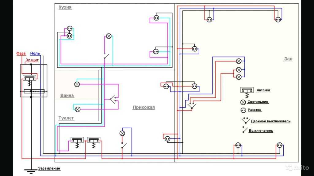 Допустим у Вас есть схема электропроводки в однокомнатной квартире. Согласно этой схеме: