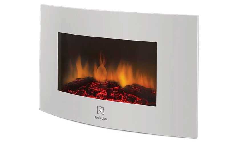 Electrolux EFP/W-1200URLS – настенный электрокамин, по внешнему виду напоминающий плазменную панель. Корпус выполнен из металла и стекла. В комплект поставки входит два вида декоративного топлива: белые камни и дрова. Присутствует опция «потрескивание дров» с регулировкой громкости. Прибор может работать как на полную, так и на половинную мощность. Встроенный вентилятор ускоряет прогрев помещения.