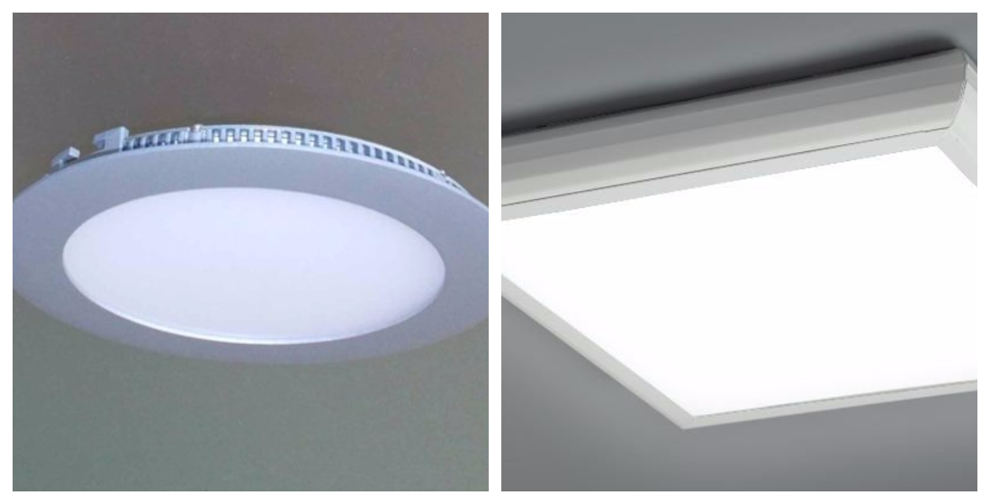 Светодиоидные потолочные светильники напоминают обычные, но они занимают малую площадь и не излучают много тепла