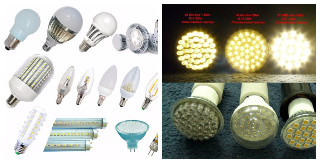 Распространенный вид цоколя ламп – это E27 и E14 (цифры указывают диаметр цоколя). Светодиодная лампа выбирается с таким же цоколем какой был на замененной накальной. Форма ламп может быть самой разнообразной – это круглая, продолговатая, грушевидная. Выбор формы ламп зависит от места ее установки и вашего вкуса.