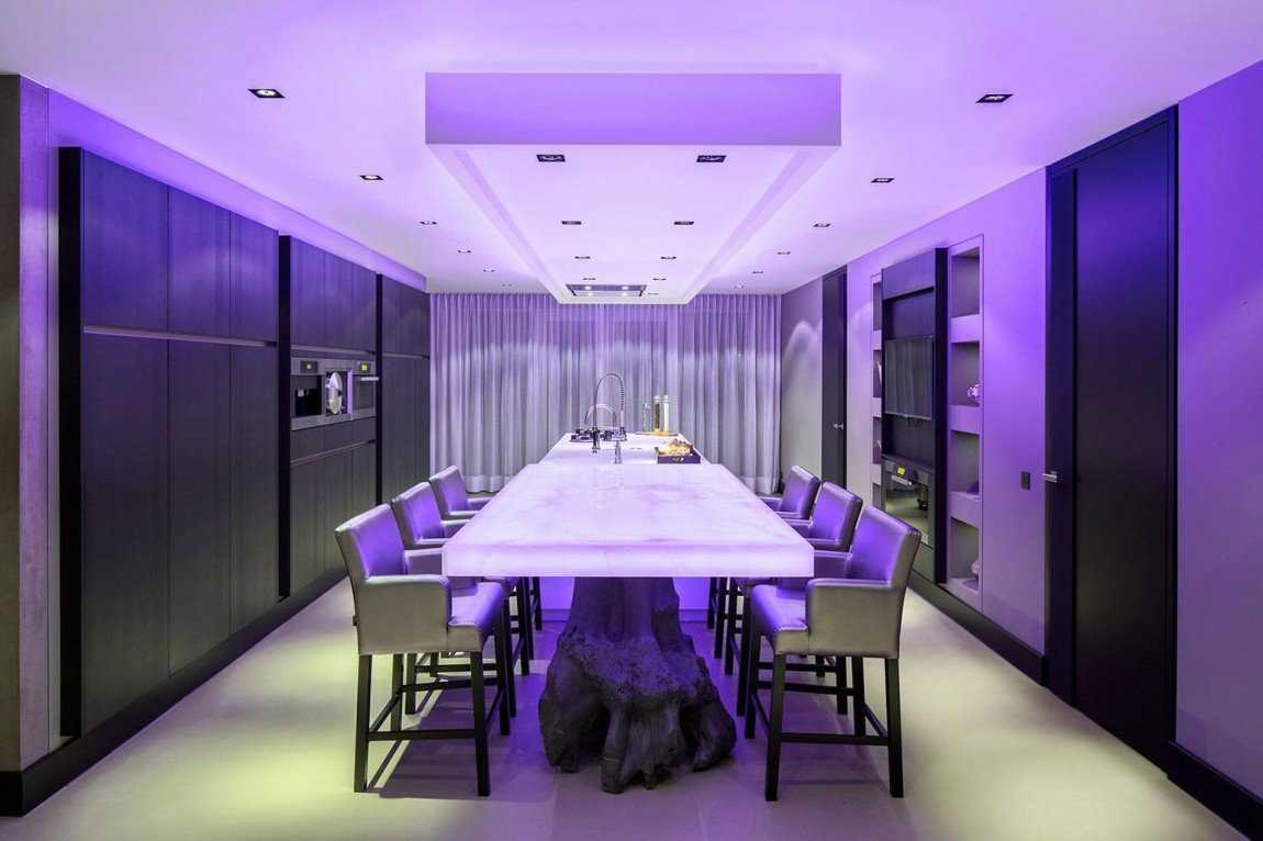 - Освещение, выполняющее декоративную функцию. Это могут быть светодиодные ленты по всему периметру помещения, включая напольное, настенное и потолочное размещение.