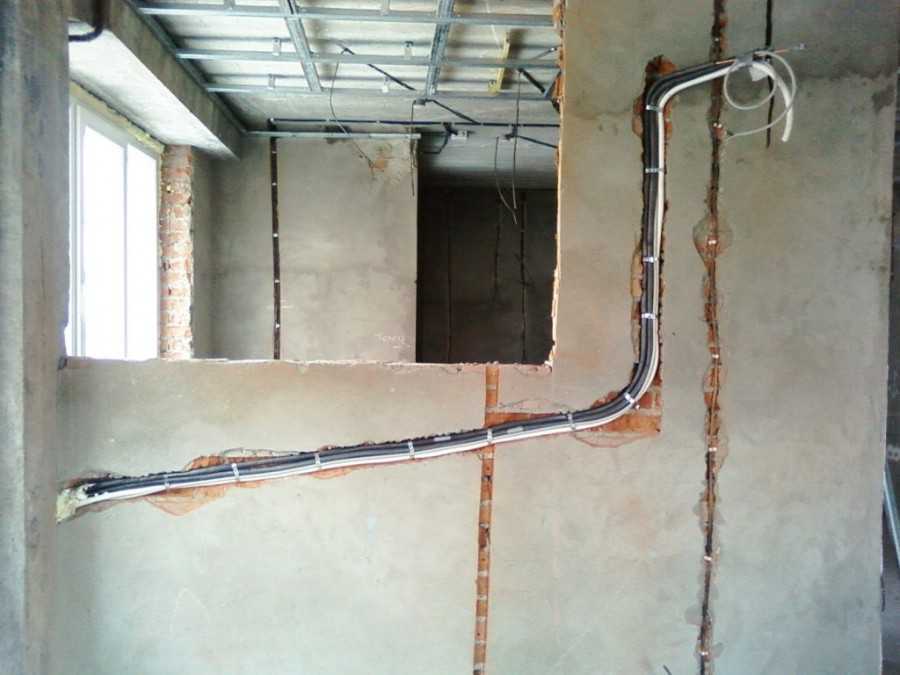 В одну их которых входит потребители кухни и ванной, а во вторую жилая комната и прихожая. Провода сменяемой проводки прокладываются внутри винило-пластиковых труб, а несменяемой — непосредственно под слоем штукатурки.